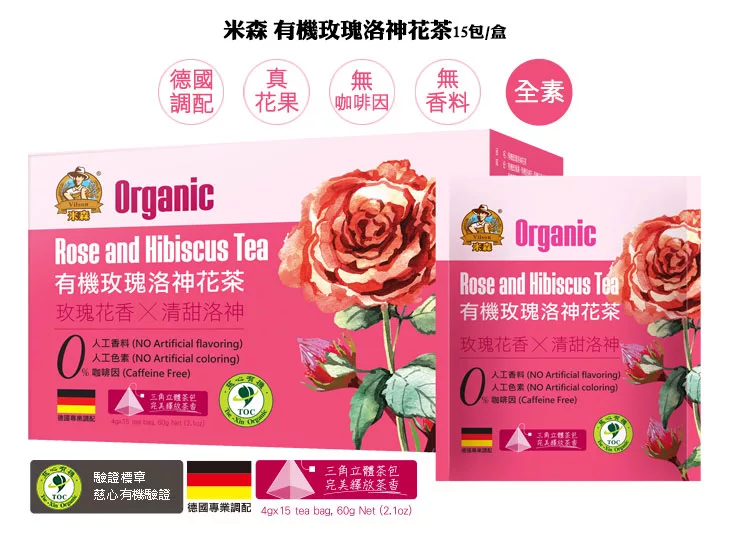 品名:米森有機玫瑰洛神花茶